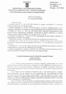 Hotărârea nr 25 din 22.07.2020 a Ministerului Afacerilor Interne, Instituția Prefectului – Județul Giurgiu – pagina 1